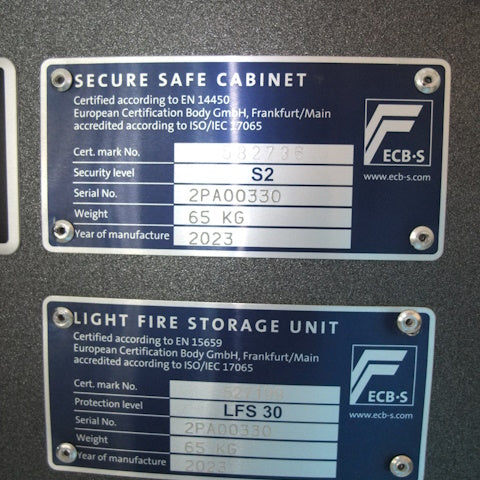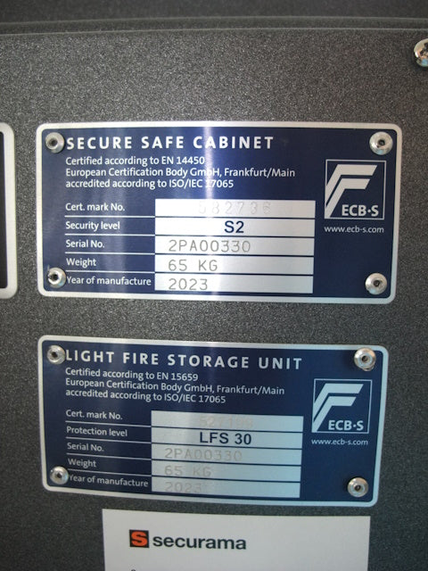 Feuerschutz: Geprüfter Feuerschutz nach EN 15659, Klasse LFS 30 P (30 Min bei 840°C für Papierdokumente)