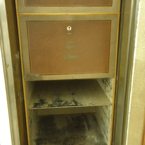 Inneneinrichtung: 2 Innentresore (oben: HxB: 160x480 mm mit DB-Schloss, 1 Schlüssel; darunter: HxB: 240x480 mm mit DB-Schloss, 1 Schlüssel), Restraum HxB: 460x480 mm mit 1 Tablar