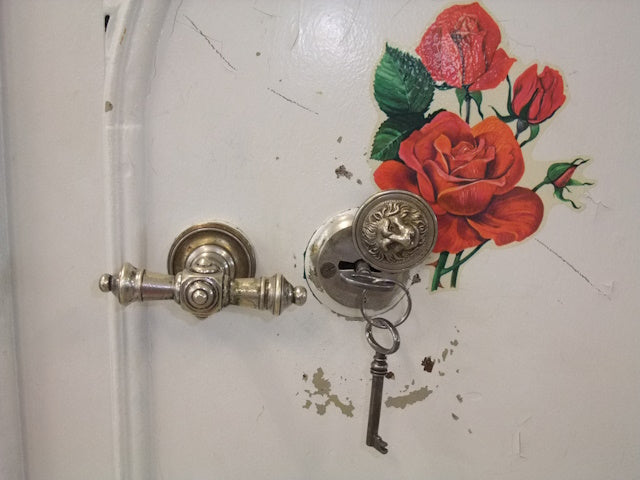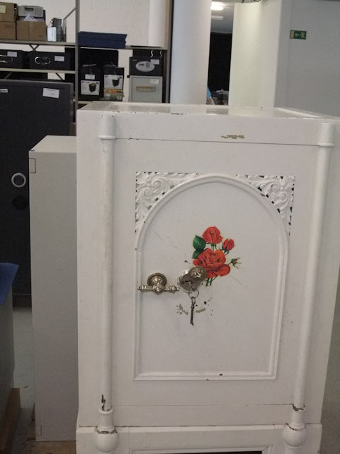 Modell: S-Antik-Tresor weiss mit Blumen