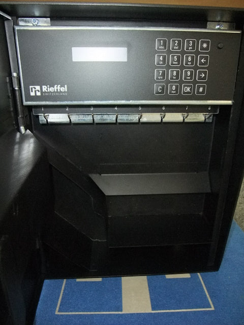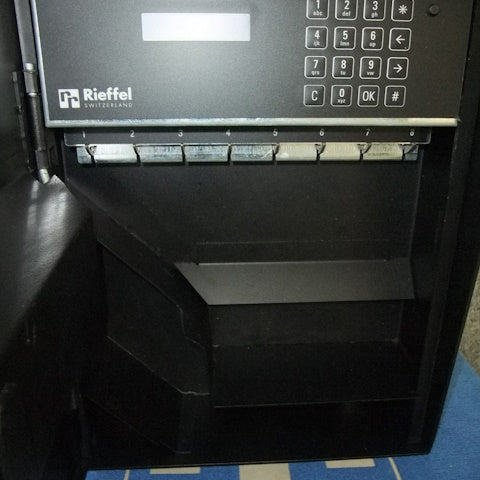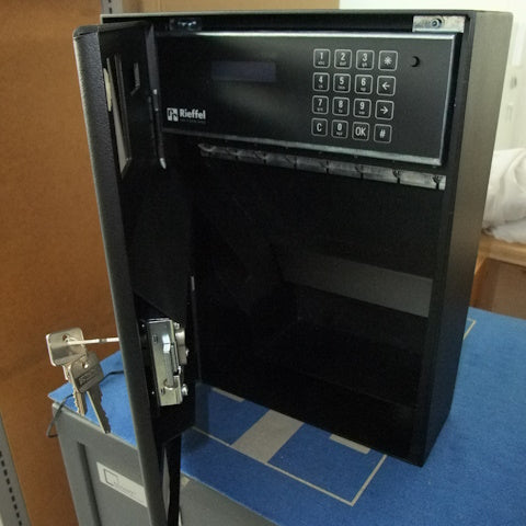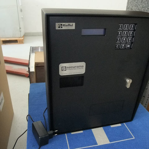 Besondere Merkmale: Jeder Schlüsselplatz mit individuellem Code bedienbar, Türe mit Profilzylinder PZ6 10/30, Netzanschluss inkl. Stromkabel, kein Datenverlust bei Stromausfall, integrierter Schlüsseleinwurf, regenabweisendes Vordach, spritzwassergeschützte Elektronik