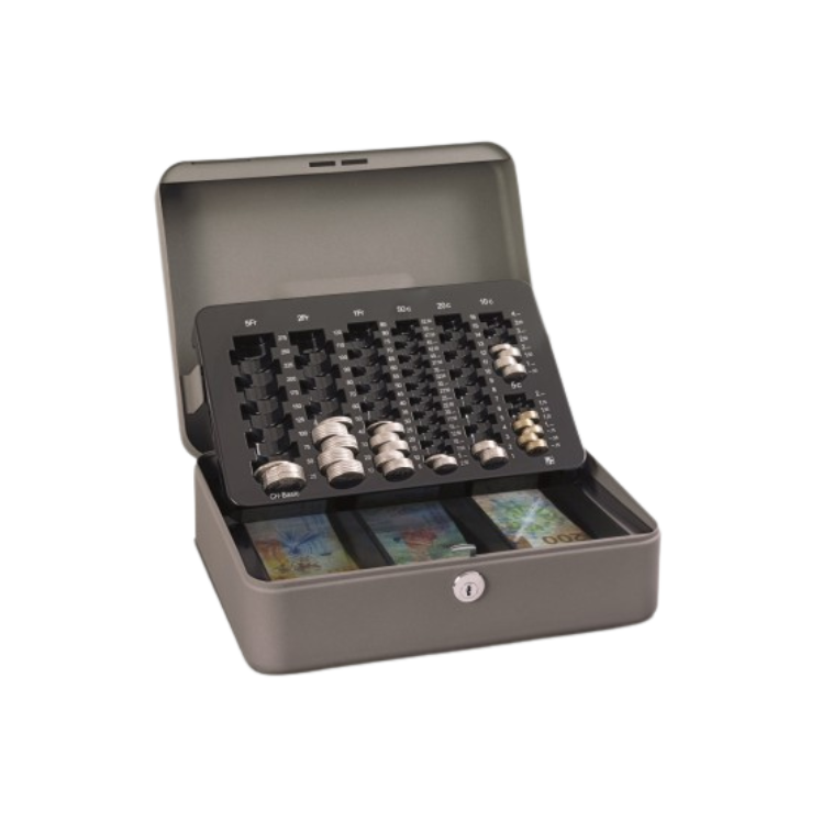 Inneneinrichtung: Herausnehmbarer Münz-Zähleinsatz, 3-teiliges Notenfach im Boden