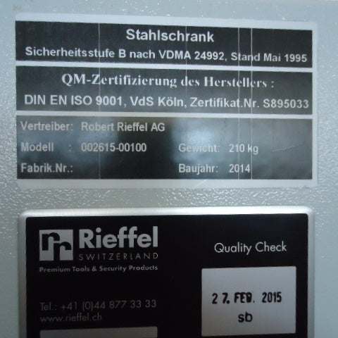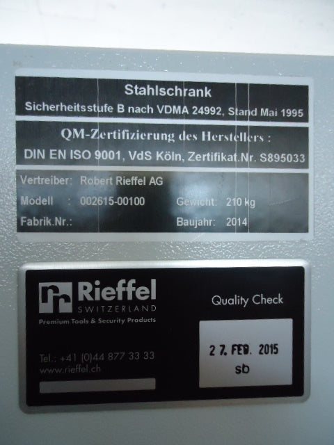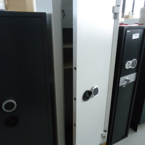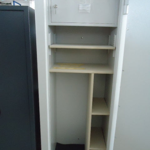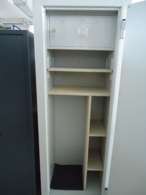 Inneneinrichtung: 11 Waffenhalter, Einstellhöhe 1280 mm, Innentresor mit Zylinderschloss 200 mm hoch